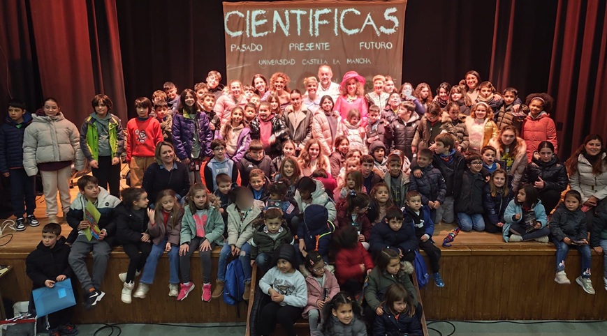 La Universidad de Castilla-La Mancha (UCLM) ha conmemorado el Día Mundial de la Niña y la Mujer en la Ciencia promoviendo las vocaciones científicas entre los niños y niñas del ámbito rural de la comunidad. Cinco mujeres, profesoras e investigadoras del campus de Albacete, interpretan a conocidas científicas del pasado en una obra teatral dirigida a las más pequeñas, y que este año la institución universitaria ha llevado al municipio albaceteño de Yeste, en la sierra albaceteña, con la invitación especial a los escolares de Letur.